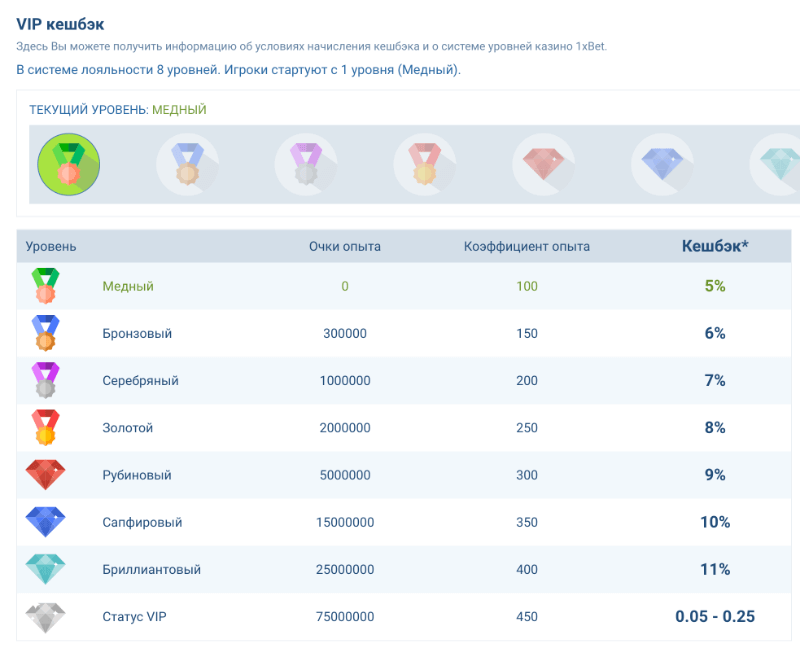1xBet предлагает функцию страхования ставок, которая снижает риск проигрыша в случае неудачного прогноза. С помощью этого инструмента игроки могут вернуть часть своих денег при проигрыше ставки. Причем как правило, стоимость такой страховки составляет 10-50% от общей суммы ставки.