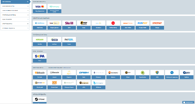 При пользовании услугами БК для вывода денежных средств доступно 43 уникальных метода. Подробный список можно увидеть на официальной платформе. Для вывода своих выигрышей можно использовать следующие опции: